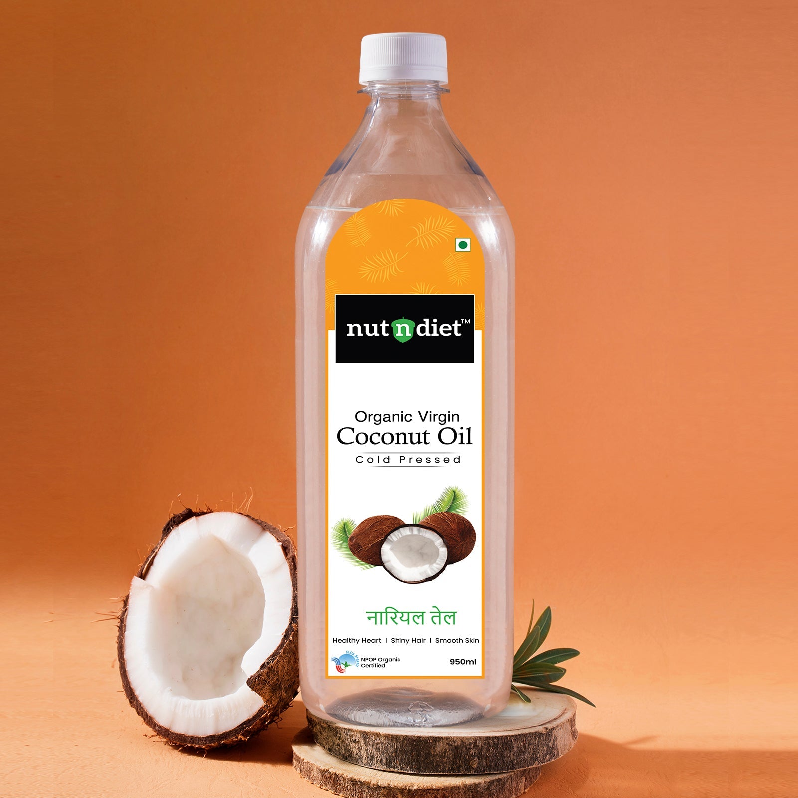 nutndiet Extra Virgin Coconut Oil Cold Pressed, Pure Organic Coconut Oil For Baby Massage, Hair Care, Skin Care And Cooking, PET Bottle 950ml